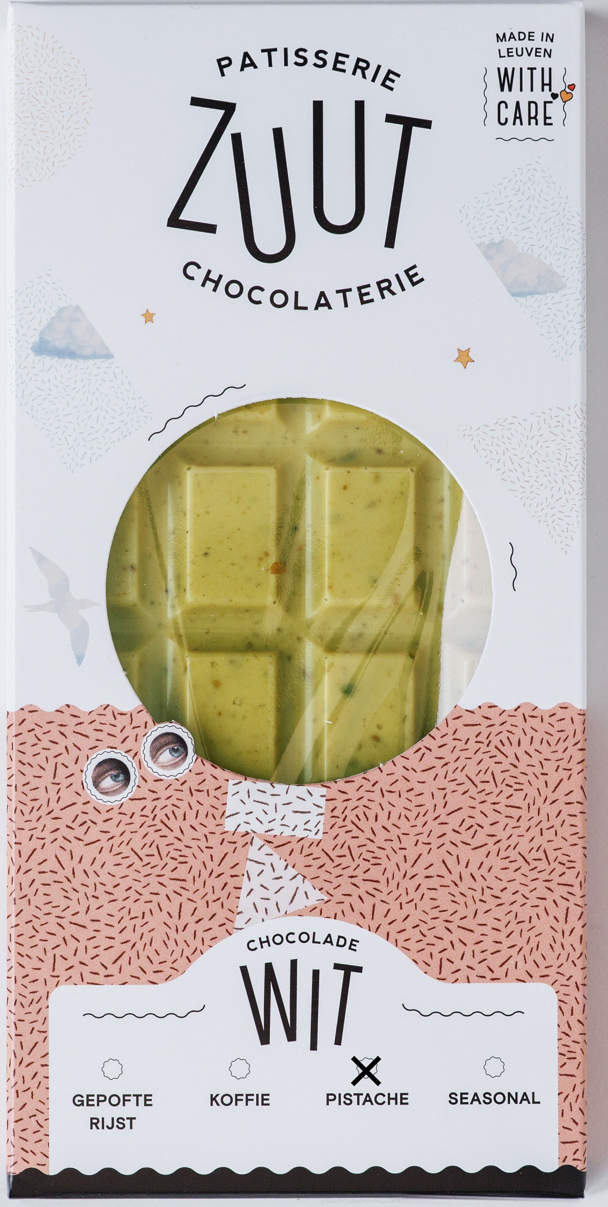 ホワイトチョコレートにピリッと塩味の効いたピスタチオの香ばしさが飽きさせな風味を醸し出すタブレット。