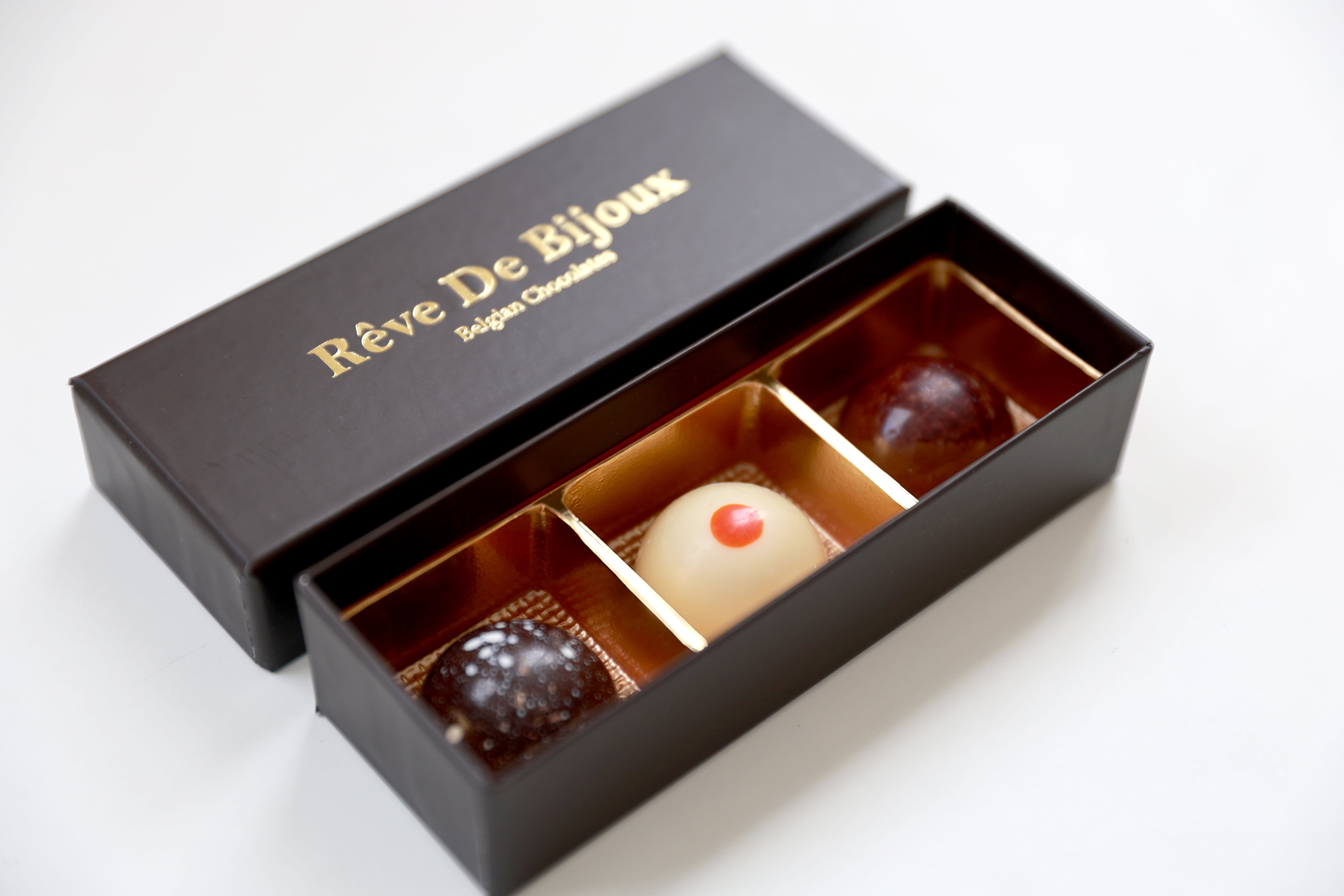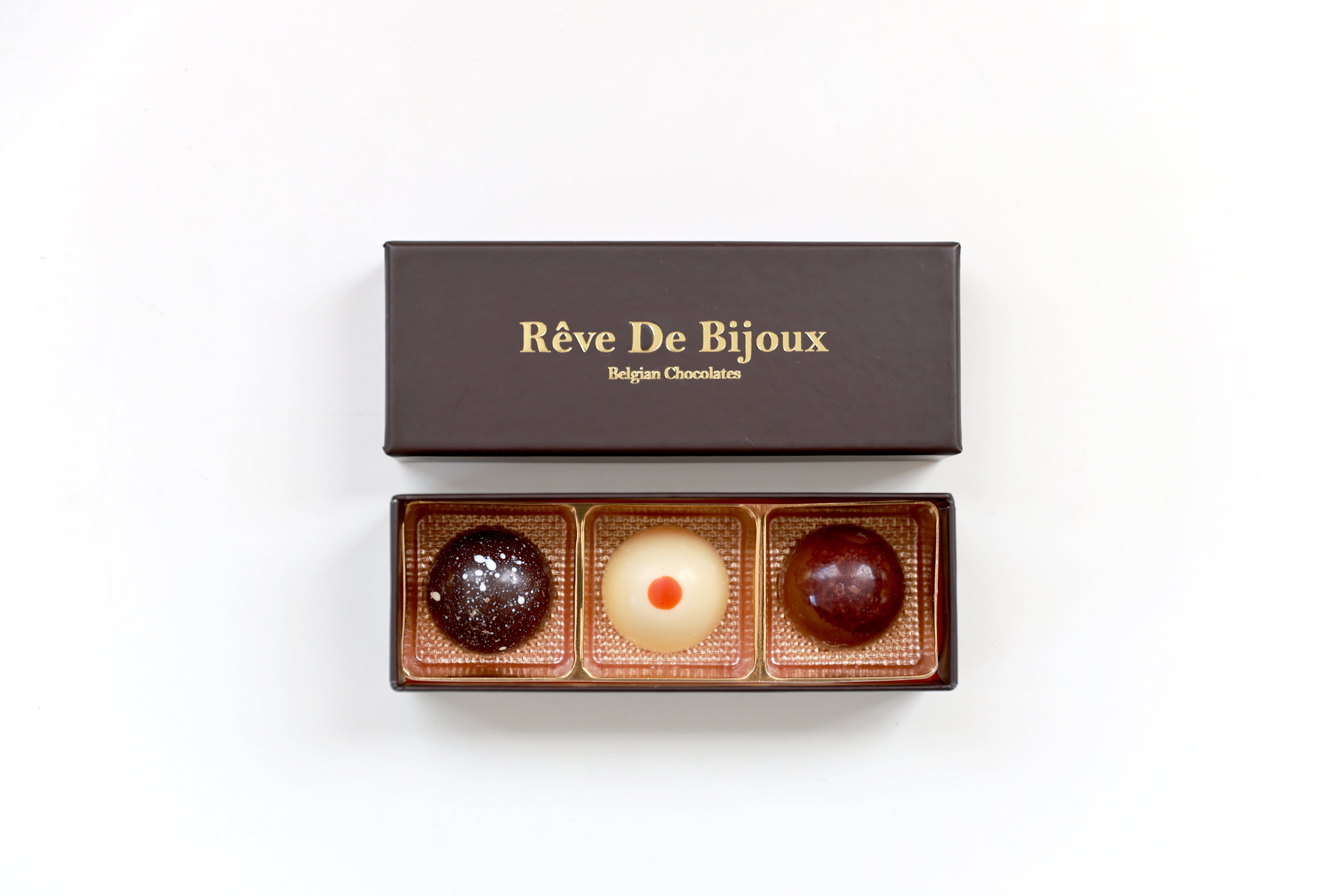 今季は、食感が楽しい「マシュマロヘーゼルナッツ」、濃厚な甘さと爽やかなフルーツの「パッションフルーツマンゴ」、フランボワーズを使用したベルギー伝統菓子をチョコレートにした「キュベルドン」の三種類のお味をご紹介。